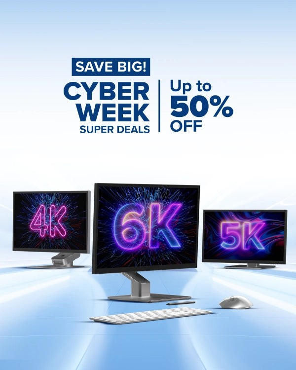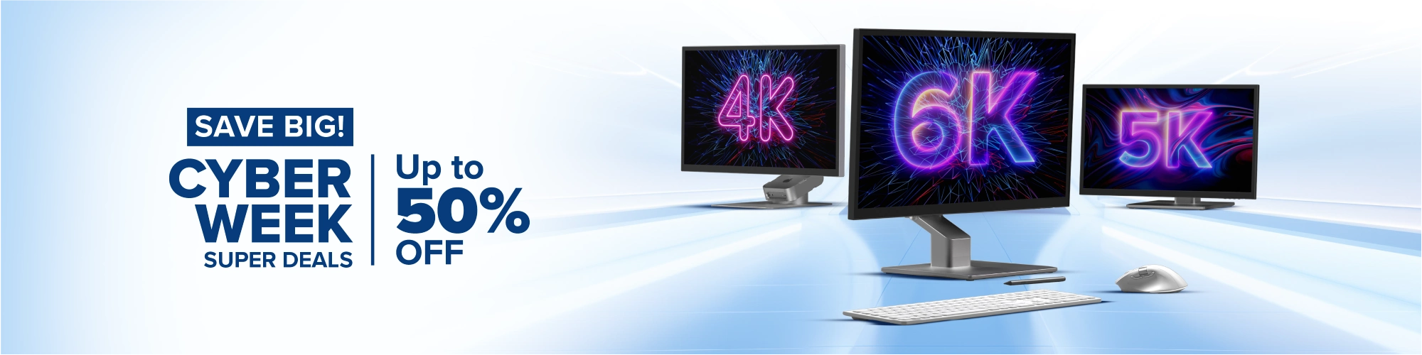 Find amazing Cyber Monday monitor deals of up to 25% off on our advanced monitors 4K, 5K, and 6K displays, designed to deliver stunning visuals for creators, professionals, and everyday users. Upgrade your desk setup and save up to 25% on ergonomic stands, risers, and monitor arms for improved comfort and posture. Stay connected with 25% off high-definition webcams for crystal-clear calls, and boost productivity with wireless keyboard and mouse bundles tailored for both Mac and Windows users.