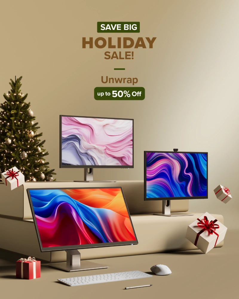 Upgrade to our New Launch Monitors and unlock FREE gifts with your purchase! Get premium add-ons that complete your workspace. Find amazing Holiday deals of up to 25% off on our advanced monitors 4K, 5K, and 6K displays, designed to deliver stunning visuals for creators, professionals, and everyday users. Upgrade your desk setup and save up to 25% on ergonomic stands, risers, and monitor arms for improved comfort and posture. Stay connected with 25% off high-definition webcams for crystal-clear calls, and boost productivity with wireless keyboard and mouse bundles tailored for both Mac and Windows users.